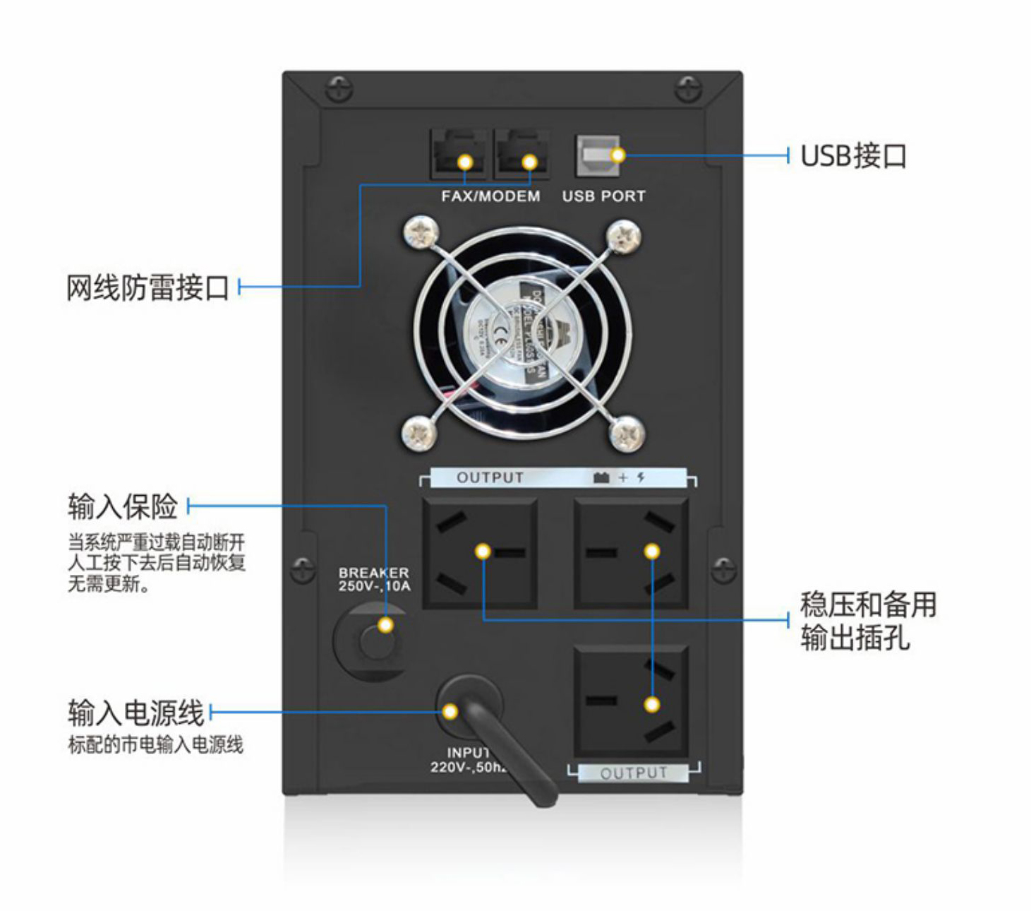 | 后备供电时间 | 单电脑使用60分钟,具体时间取决于电脑实际功耗 | |