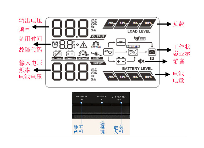 | 转换时间 | 0 ms(市电模式到电池模式),4 ms (标准条件下:逆变到旁路) |