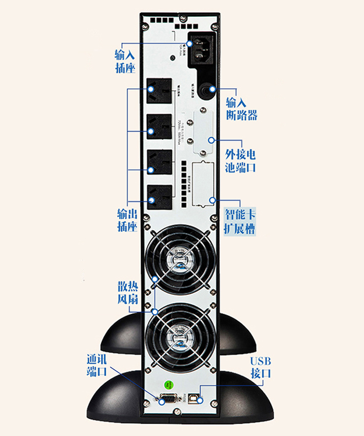 可安装至普通的网络机柜、服务器机柜等里面工作,节省空间。该机型占用空间高度为2U,外接大容量蓄电池,停电后保证负载所需要的延时时间