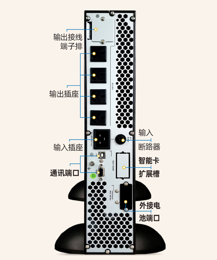 可安装至普通的网络机柜、服务器机柜等里面工作,节省空间。该机型占用空间高度为2U,外接大容量蓄电池,停电后保证负载所需要的延时时间