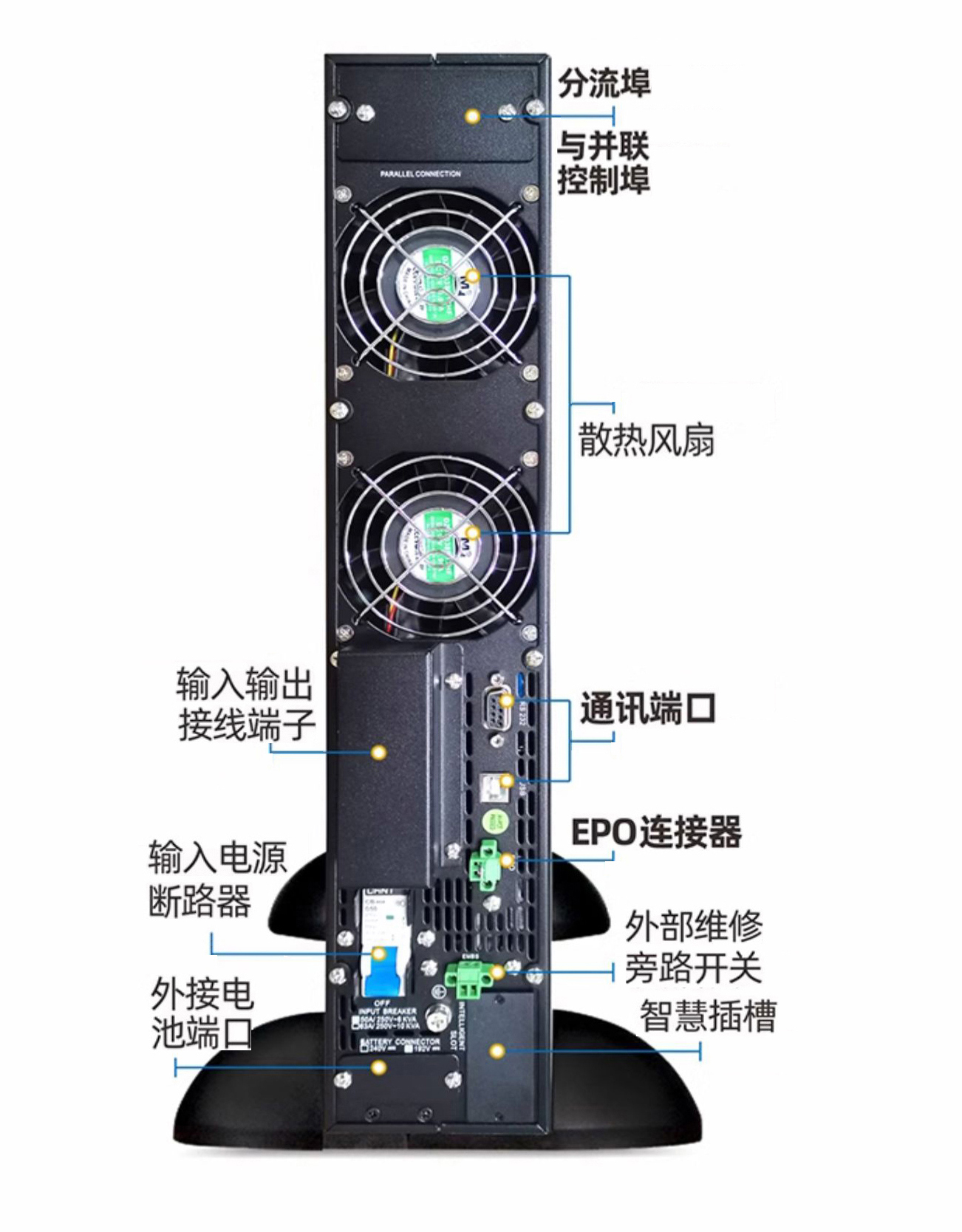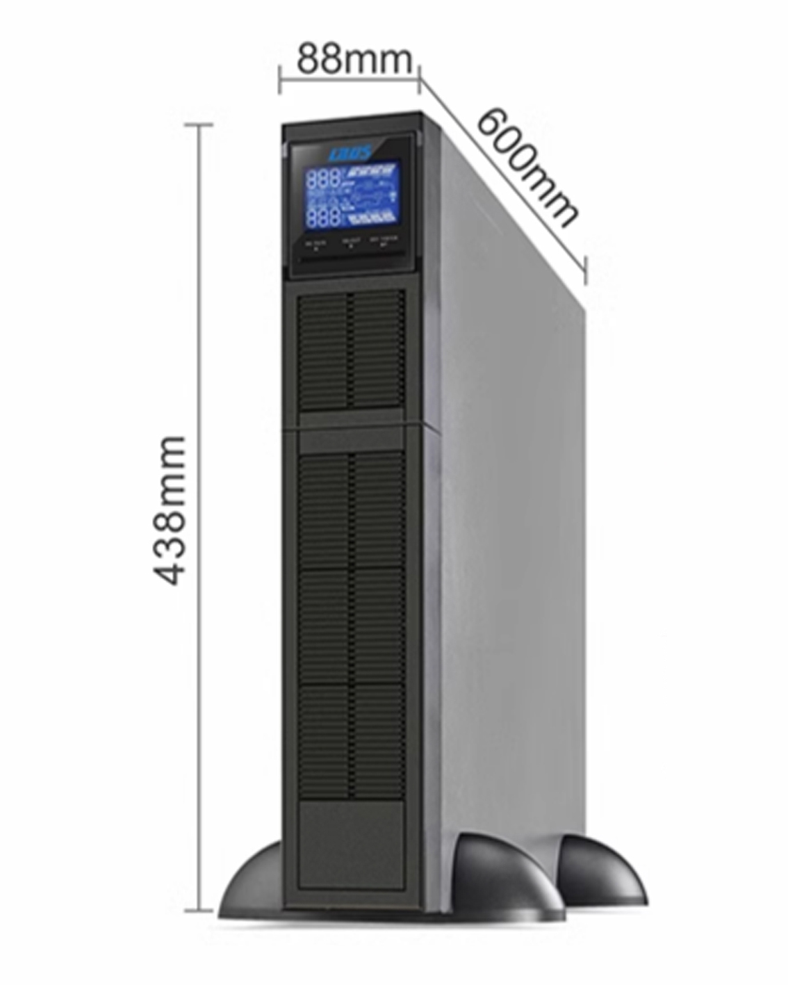 可安装至普通的网络机柜、服务器机柜等里面工作,节省空间。该机型占用空间高度为2U,外接大容量蓄电池,停电后保证负载所需要的延时时间