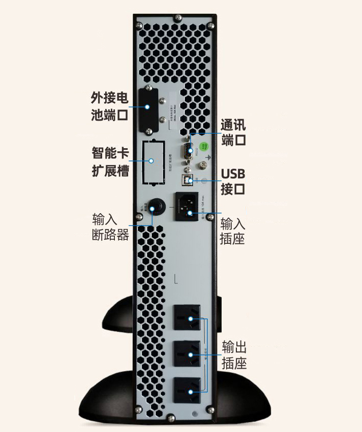 可安装至普通的网络机柜、服务器机柜等里面工作,节省空间。该机型占用空间高度为2U,外接大容量蓄电池,停电后保证负载所需要的延时时间